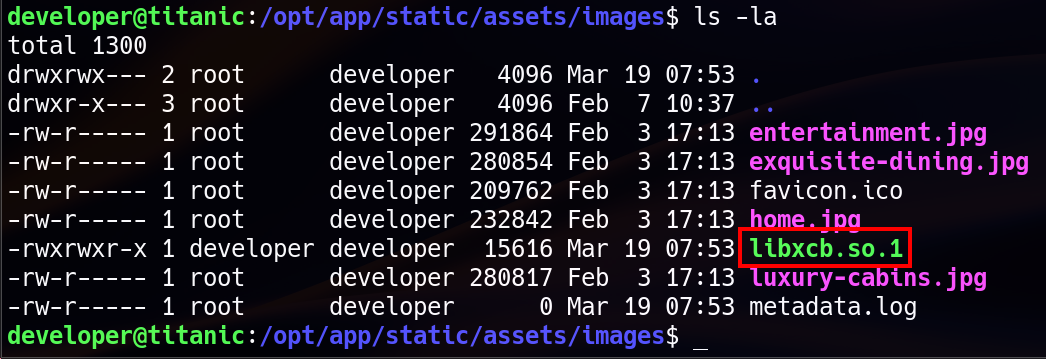This compiled shared object was then placed in /opt/app/static/assets/images/. When the cron job executed the script, ImageMagick’s identify command processed the files in the directory. The malicious shared library was then loaded, triggering the payload and providing a reverse shell as root.